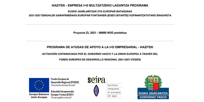 El programa HAZITEK apoya el proyecto W3D El programa HAZITEK apoya el proyecto W3D, Plataforma de monitorización, diagnóstico y control de las redes de suministro urbano mediante visualización avanzada 3D. Este ha sido cofinanciado por el Gobierno Vasco y la Unión Europea a través del Fondo Europeo de Desarrollo Regional 2021-2027 (FEDER) mediante el programa…